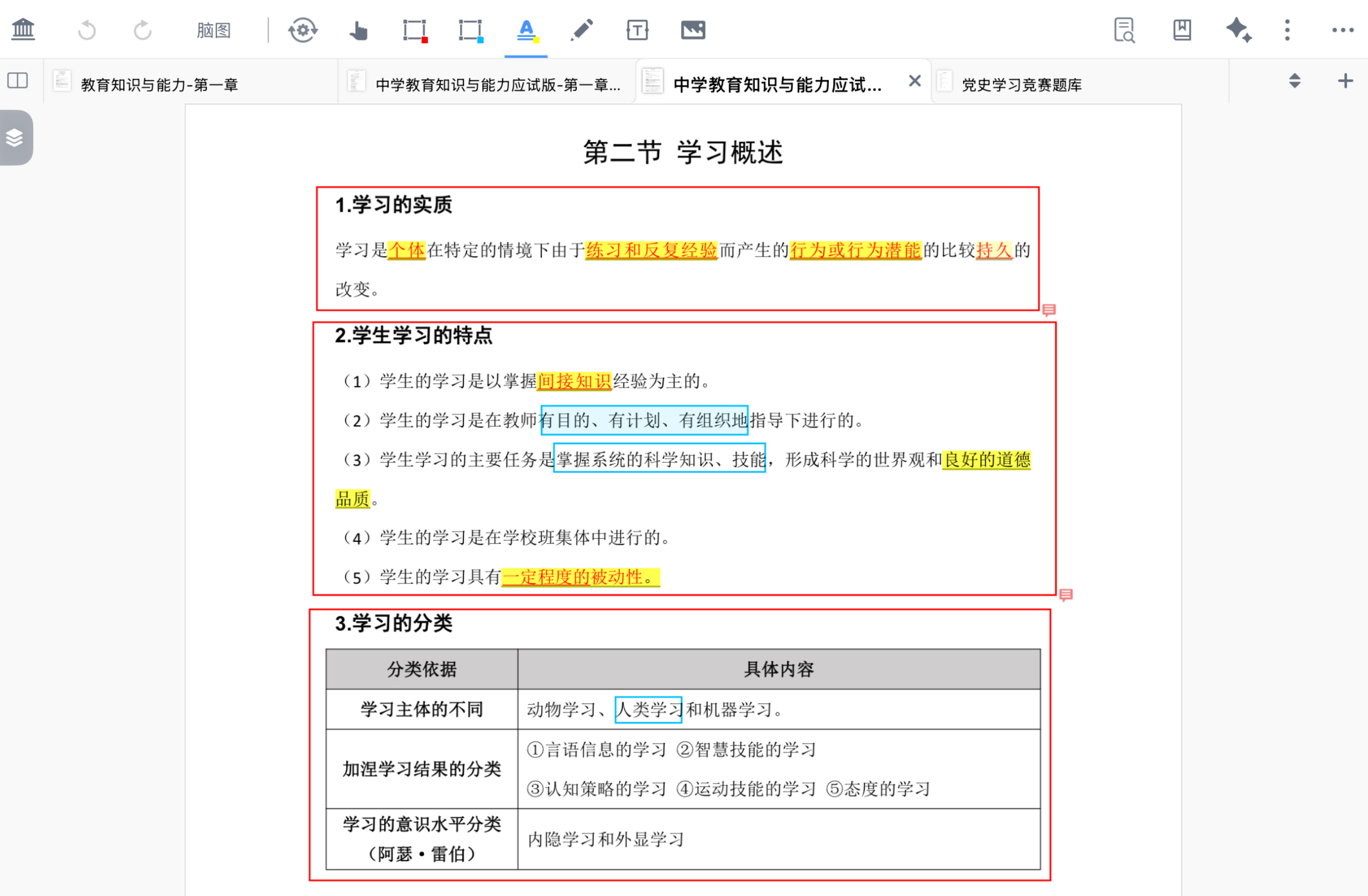 使用矩形工具框选从上往下依次标注需要制卡的卡片范围,用不同的颜色来区分属于问题或者答案部分。