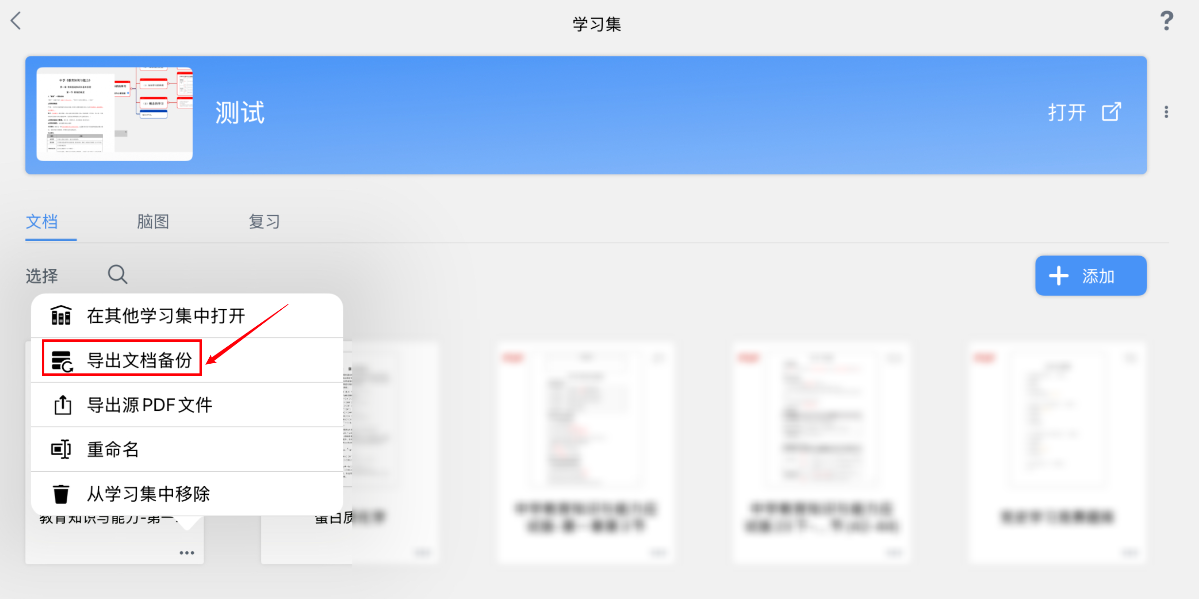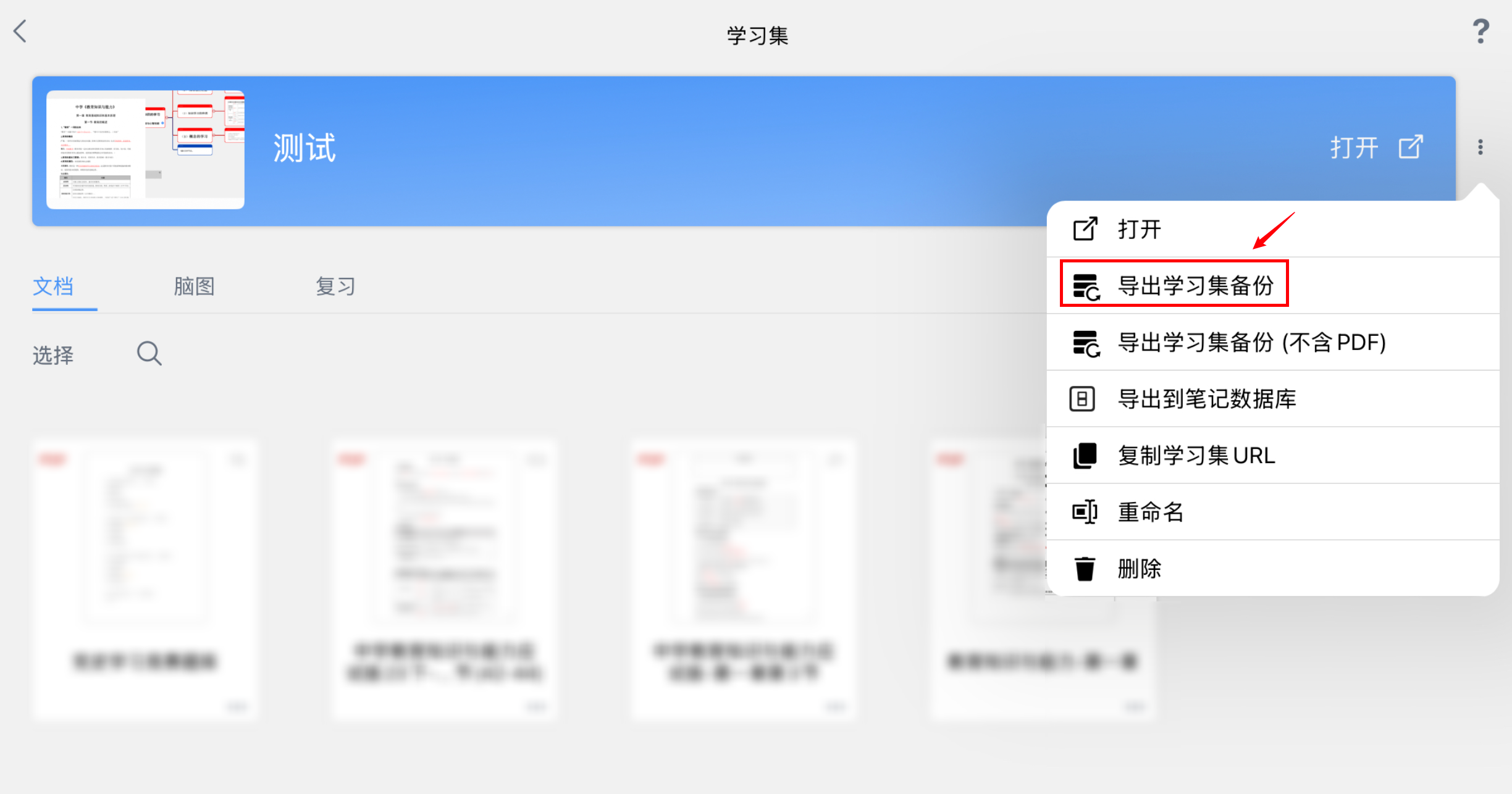 批注完成后,在学习集首页选择要制卡的文件点击导出文档备份,将会得到一个.marginpkg格式文件。