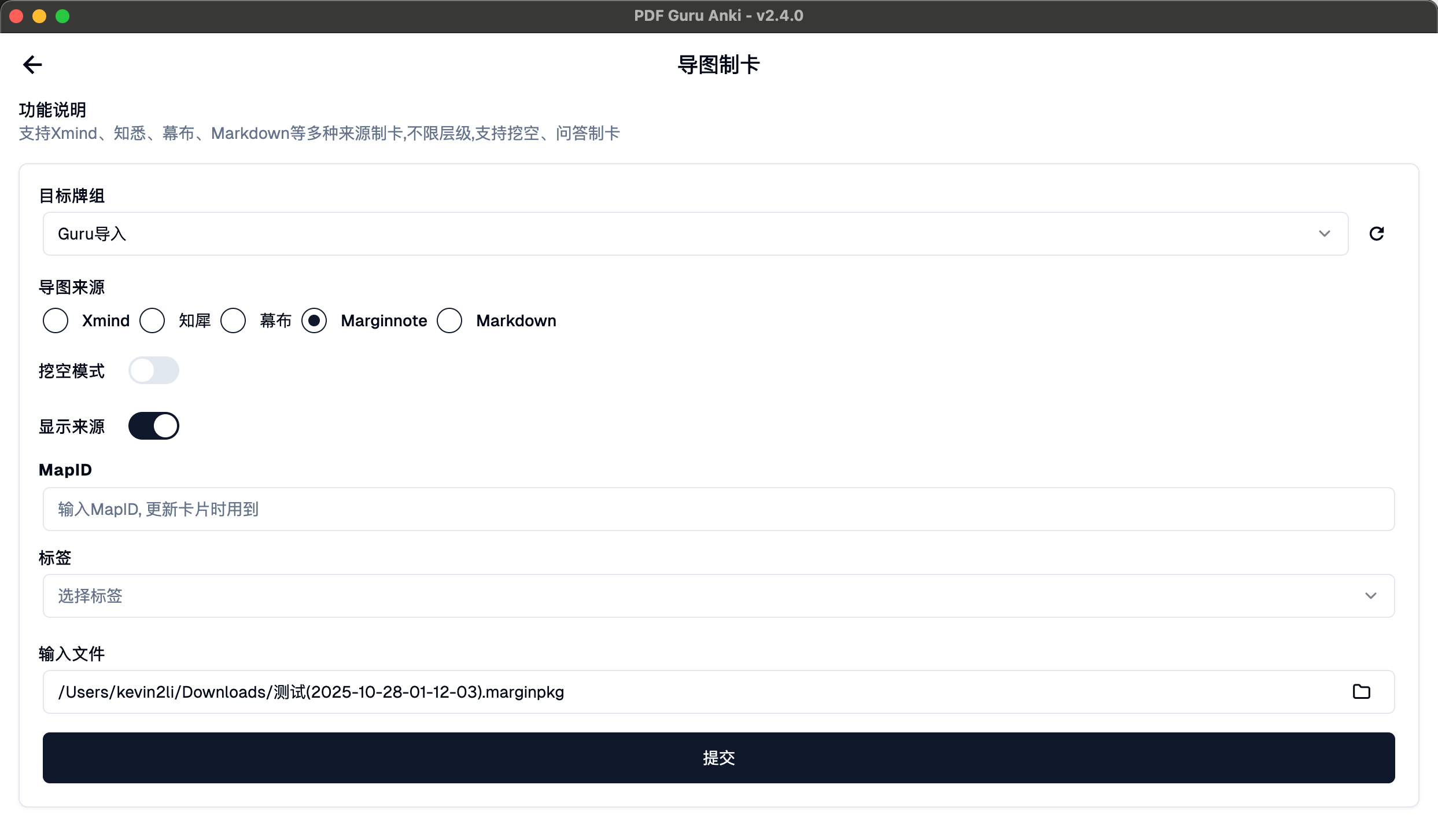 本软件支持使用MarginNote4进行批注制卡和导图制卡。