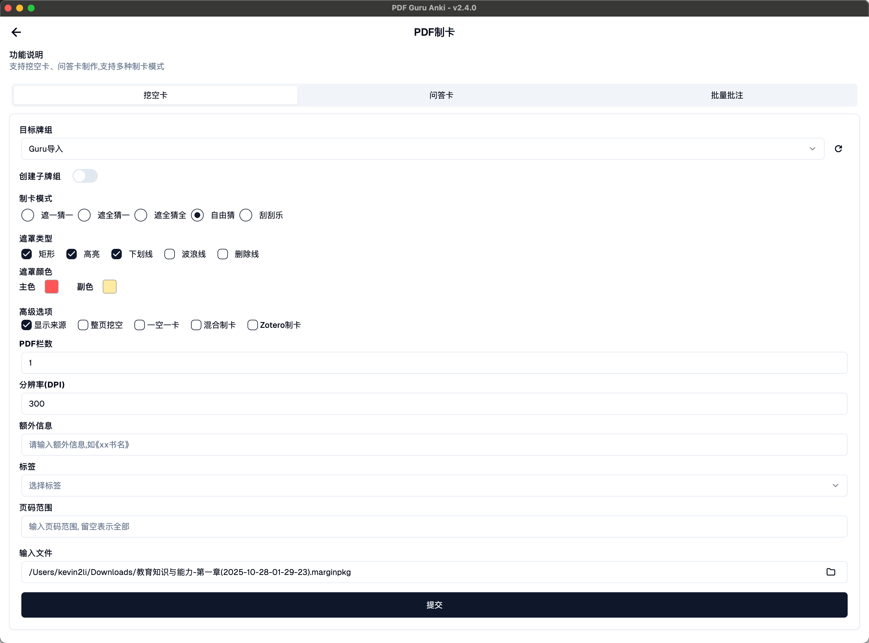 然后在”PDF制卡“功能中使用这个文件制卡即可,就像和.pdf文件制卡一样。